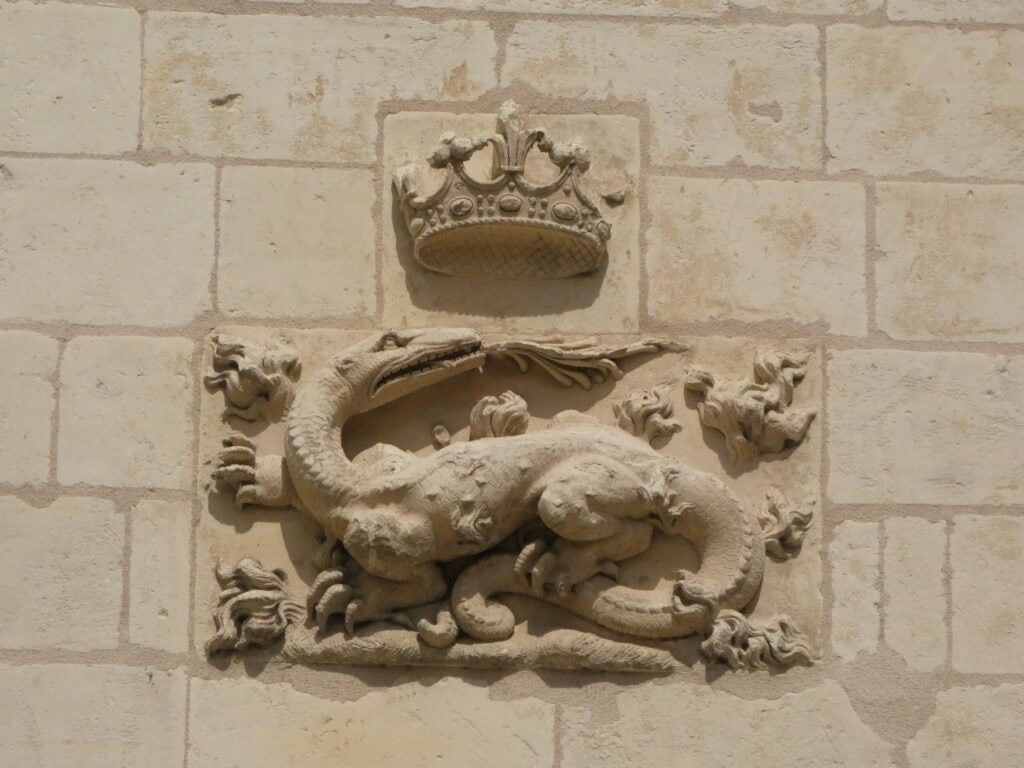On peut observer l’emblème de la « salamandre » couronnée de François Iᵉʳ (avec des flammes). On le voit notamment dans la Galerie François-Iᵉʳ au château de Fontainebleau, et aussi à Chambord et Blois.