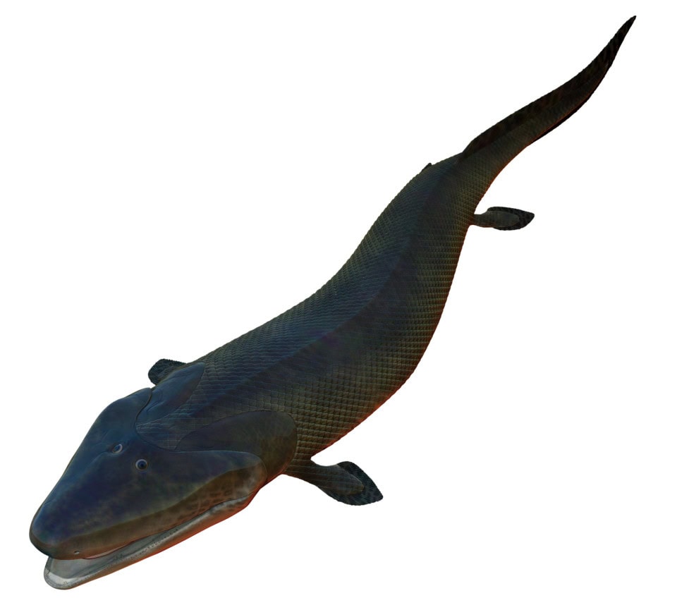 Les recherches montrent que comme la nageoire de Tiktaalik n’était pas connectée au squelette principal, il ne pouvait pas marcher sur la terre. Une fois qu’on dispose du squelette voilà comment se présente réellement le Tiktaalik: